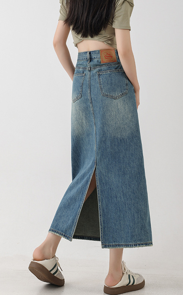 洗練されたシルエットのデニムロングスカート。裾に施されたスリットが動きやすさを実現し、さまざまなスタイルにマッチ。カジュアルな日常使いから、ちょっとしたお出かけまで幅広く活躍するアイテム。高品質な厚手デニム生地を使用し、上品さと耐久性を兼ね備えた一枚。おしゃれなコーディネートの必須アイテムです。