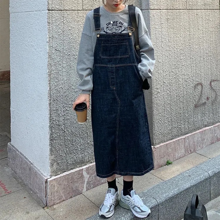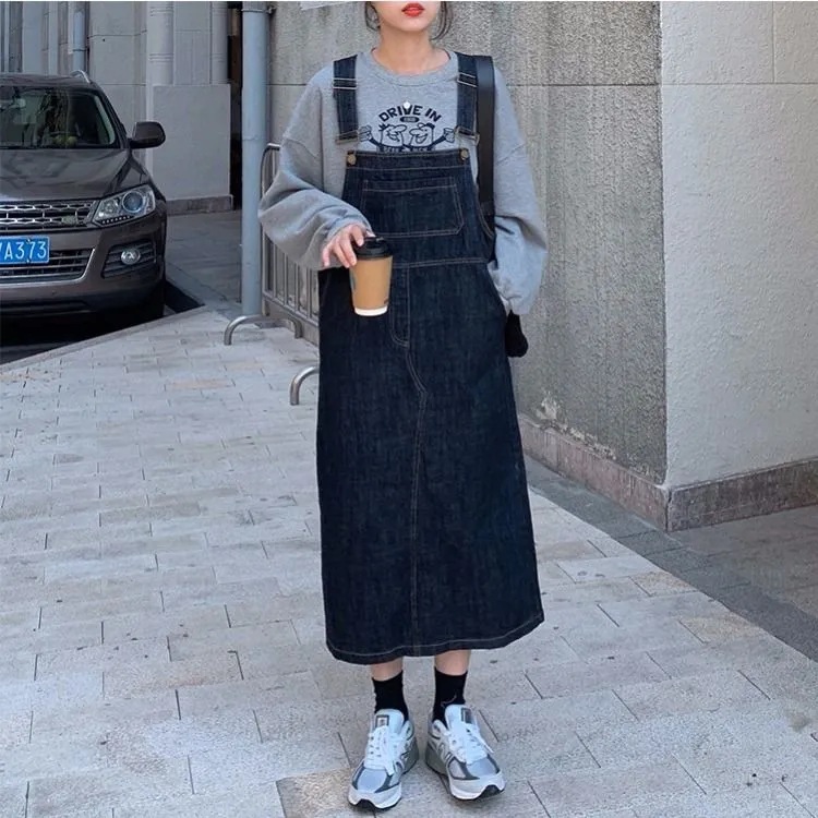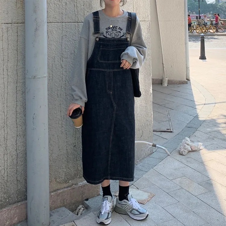 トレンド感抜群の韓国風デニムサロペットスカートが登場。