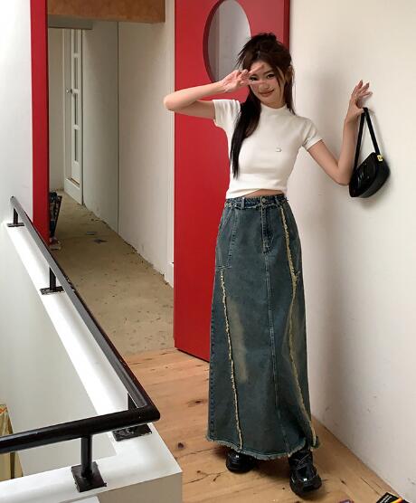 トレンド感抜群のハイウエストデニムスカートが登場。