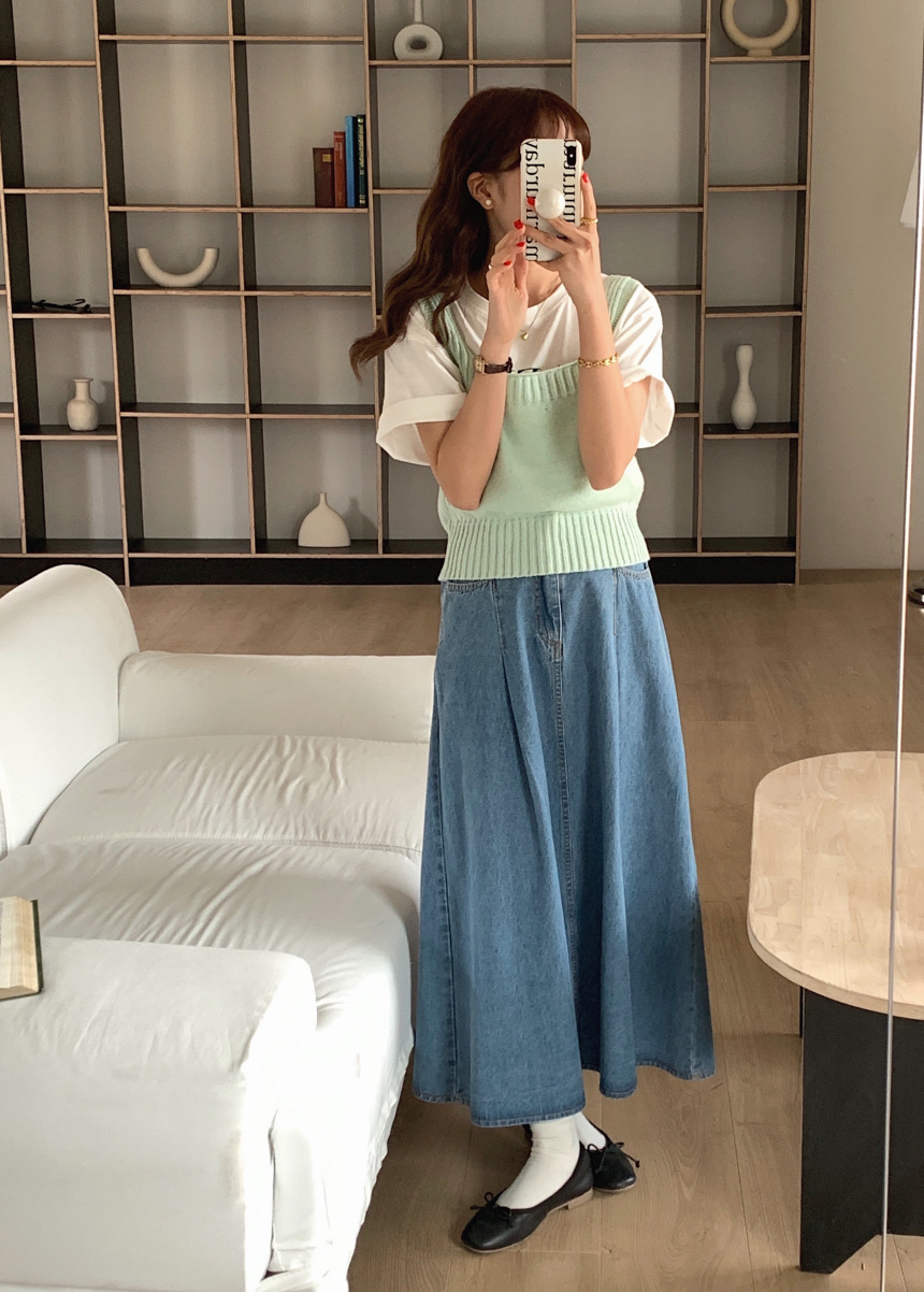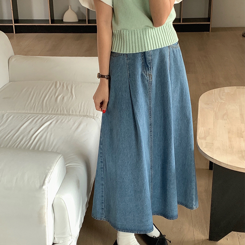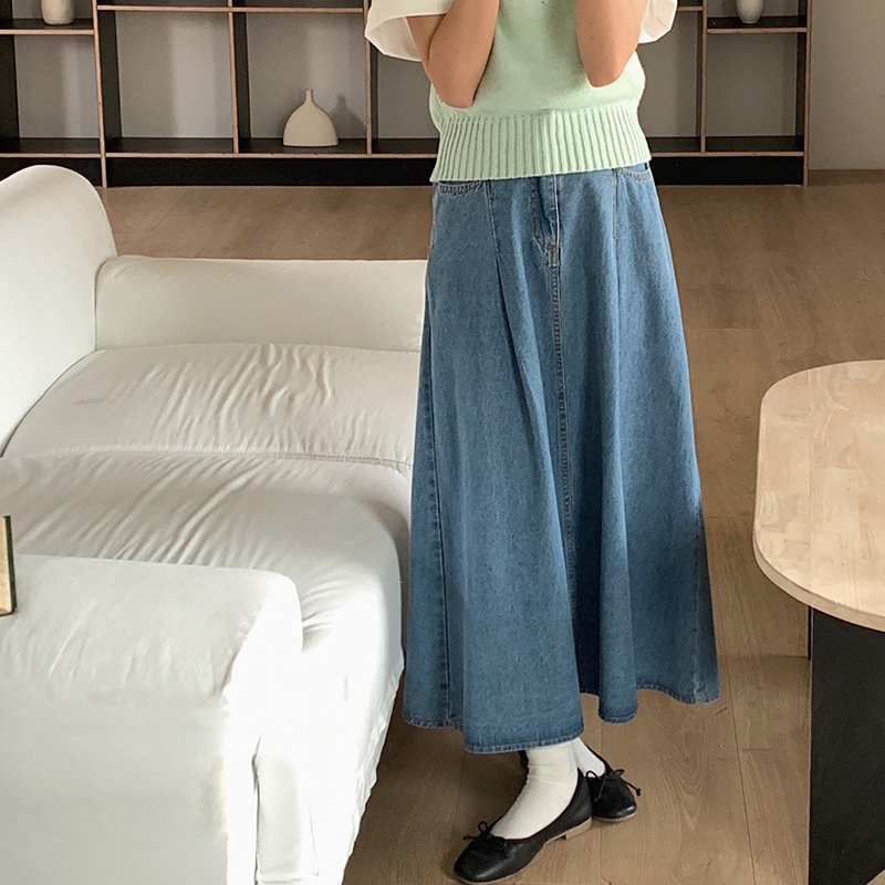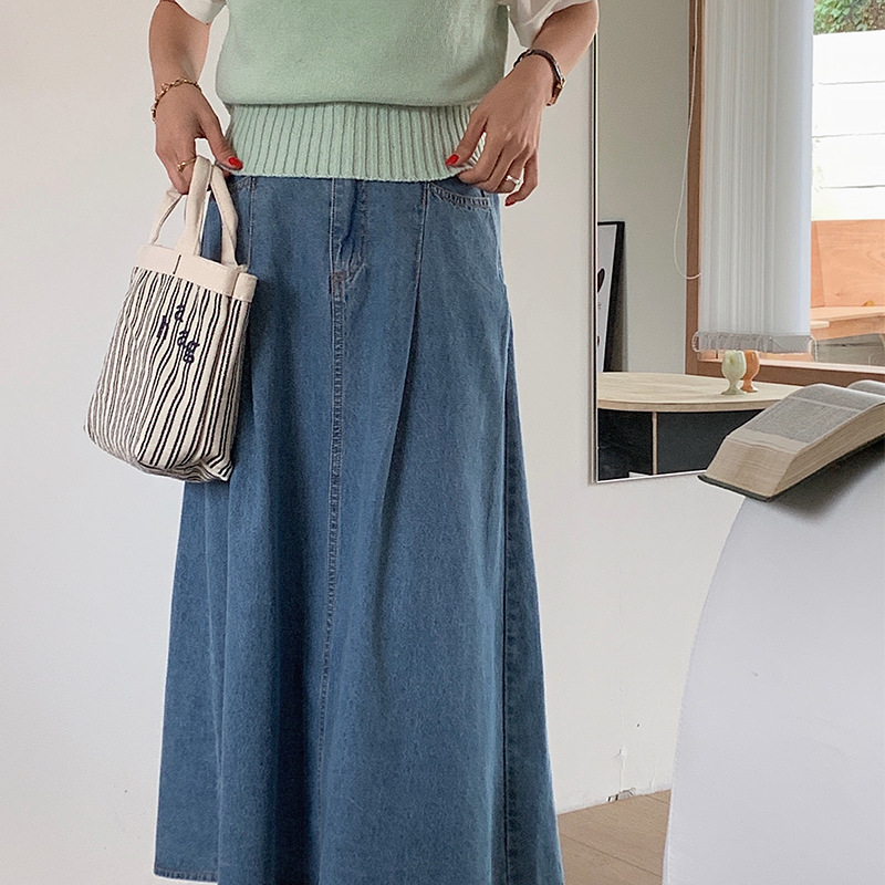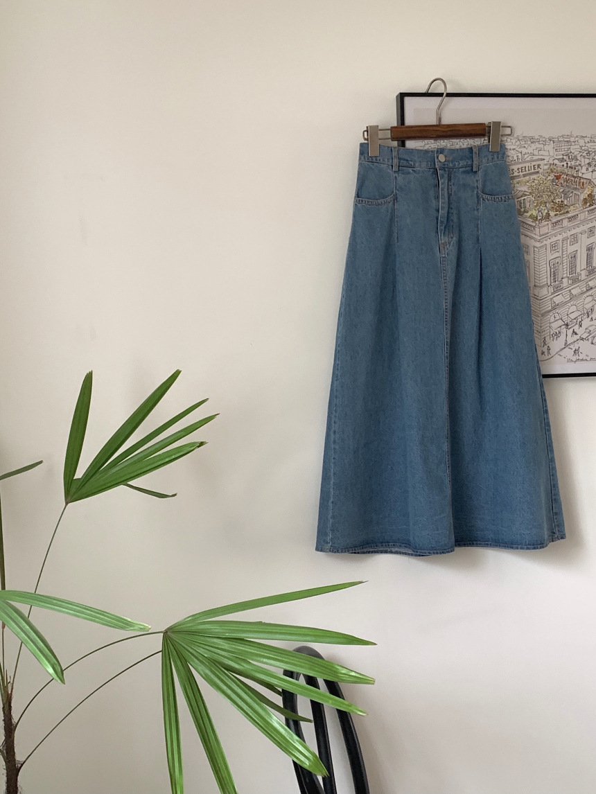 ゆったりとしたデザインのデニムスカートが登場しました。
