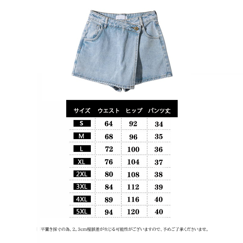 ■コメント ・スカートに見えるデニムショートパンツです。 ・定番のデニムでどんなトップスにも合わせやすいです。 ・スラッと足見せができるショート丈。 ・ベルトフープつきで気分やスタイルに合わせてお好みのベルトをつけることができます。 ・両ポケット、バックポケット、コインポケットつきでアクセントになります。 ■サイズ(単位:約cm) 画像に記載L(OK) ■カラー 画像に記載 ■伸縮性 なし ■裏地 あり ■生地の厚さ 普通 ■透け感 なし ■素材 綿80%ポリエステル20% ■包装状況 OPP袋