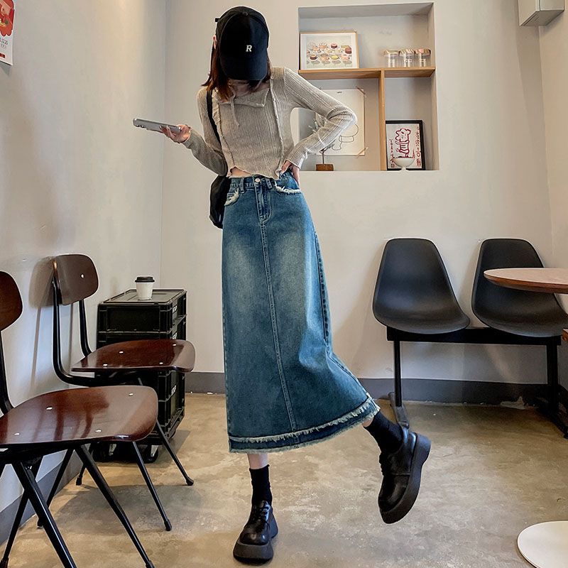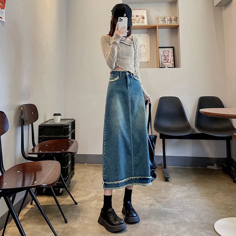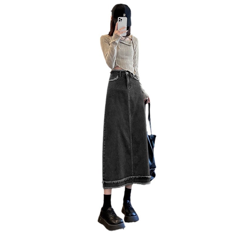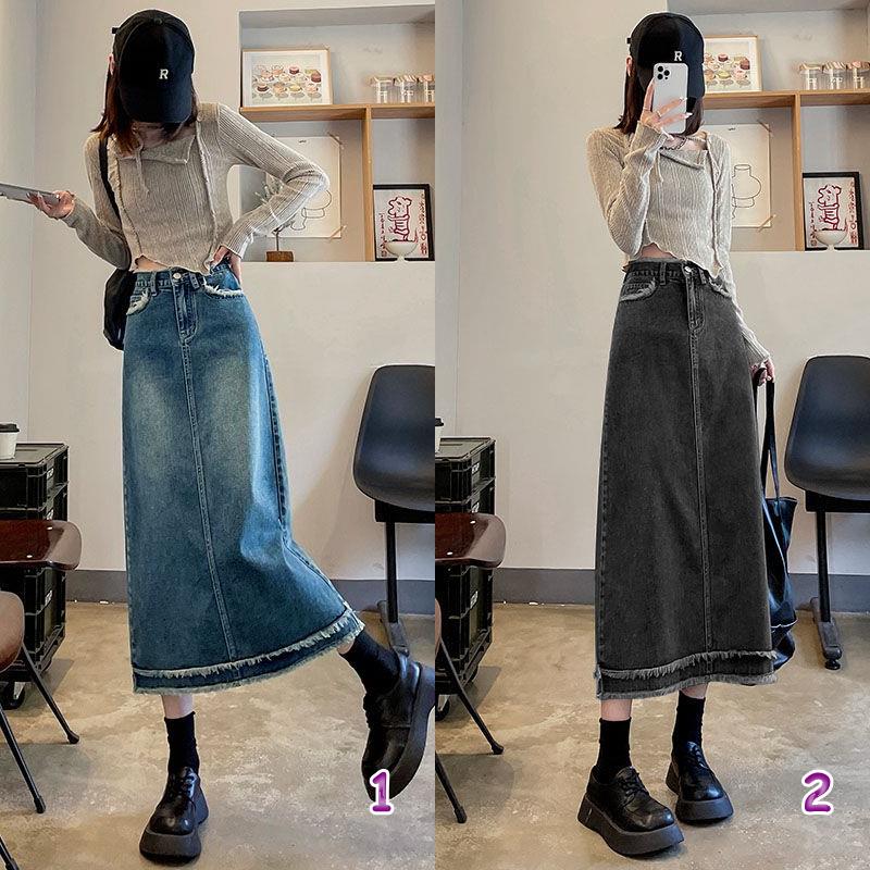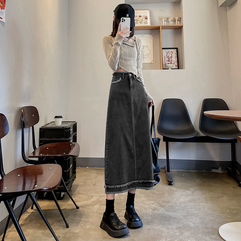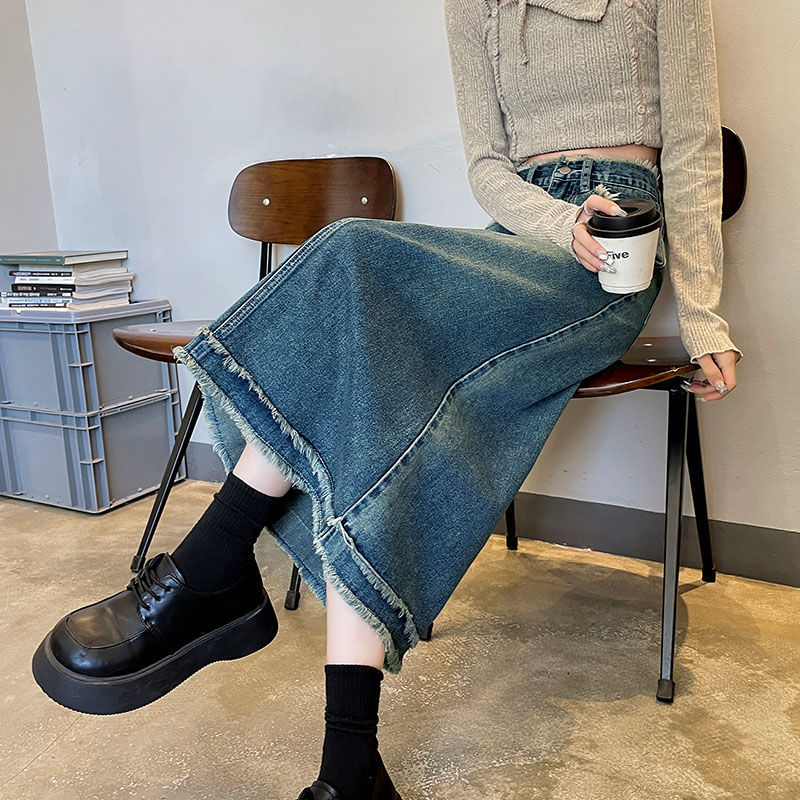 裾のフリンジデザインがおしゃれなロング丈で、カジュアルからきれいめまで幅広いコーディネートに活躍します。