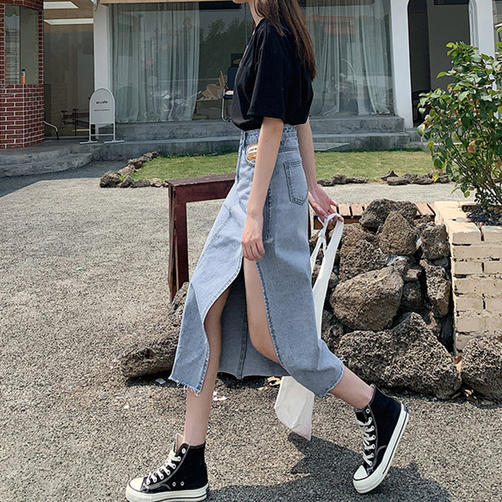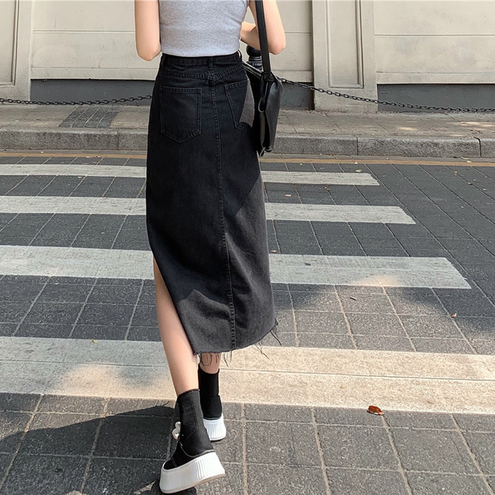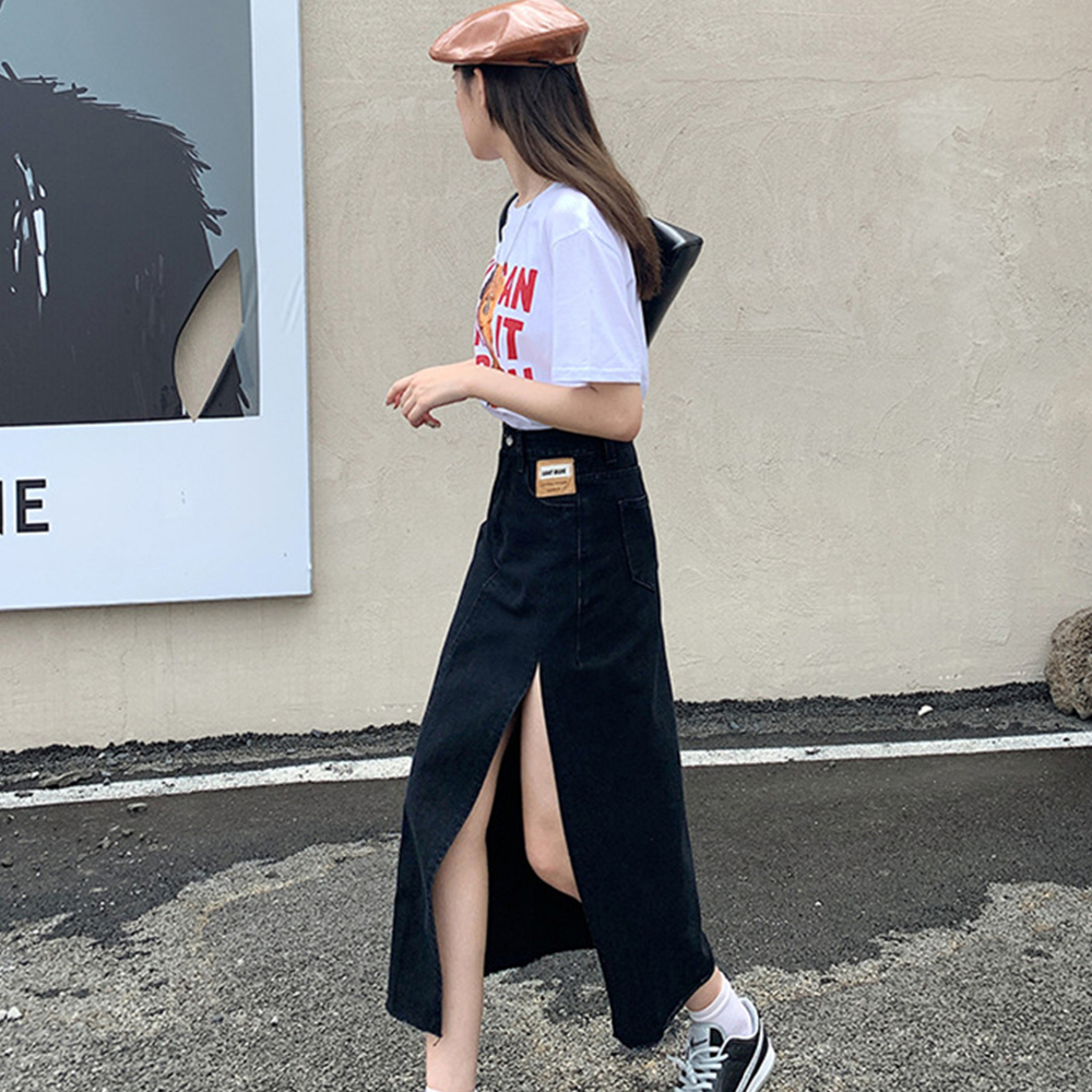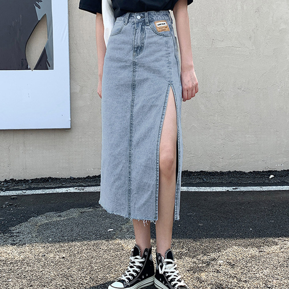 深めのスリットが入ったおしゃれなデニムスカートのロングタイプです。