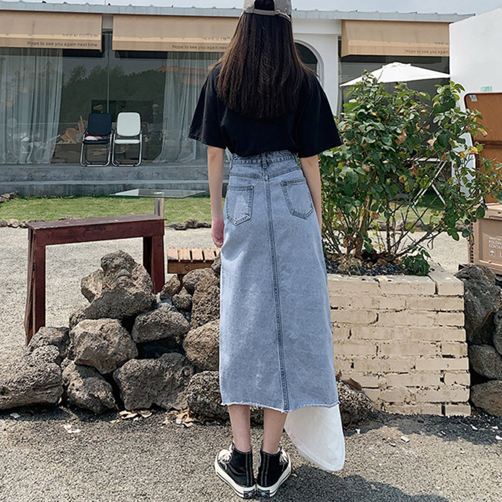 幅広いコーディネートが楽しめる人気のデニムスカートです。