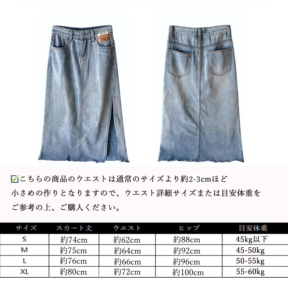 カラー:ブラック/サックス サイズ:S/M/L/XL [S]スカート丈:約74cm ウエスト:約62cm ヒップ:約88cm [M]スカート丈:約75cm ウエスト:約64cm ヒップ:約92cm [L]スカート丈:約76cm ウエスト:約66cm ヒップ:約96cm [XL]スカート丈:約80cm ウエスト:約72cm ヒップ:約100cm 裏地:なし 伸縮性:なし 透け感:なし