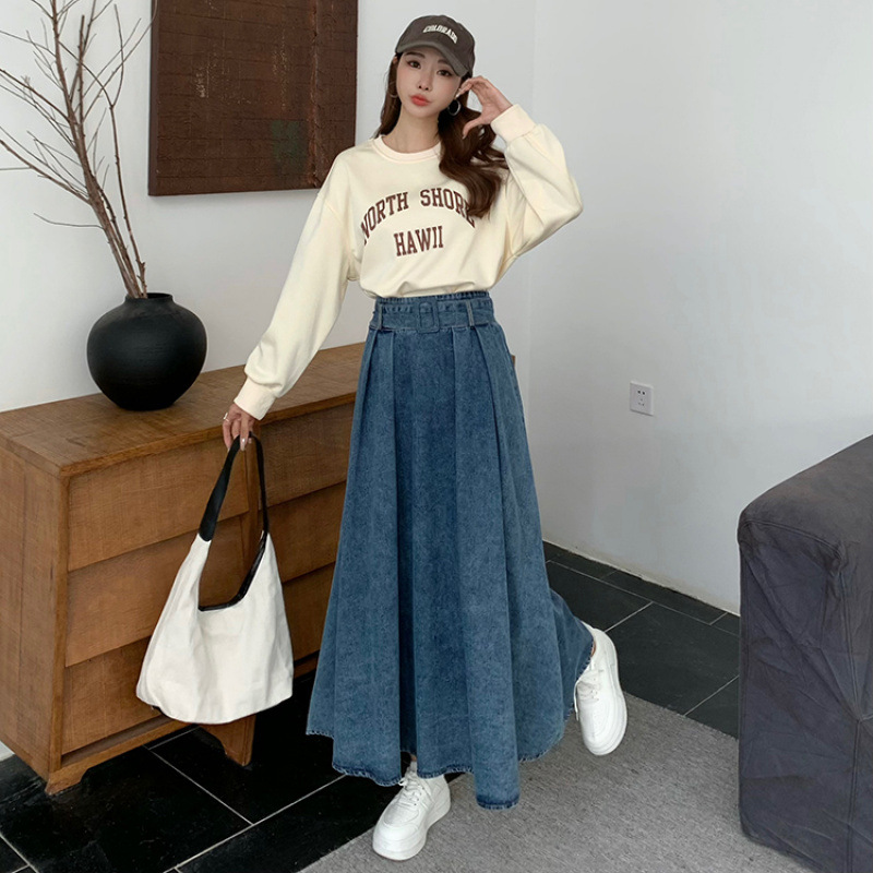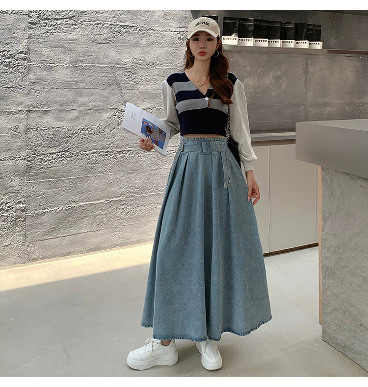 深めのタックで立体的なシルエットを実現したデニムスカートです。