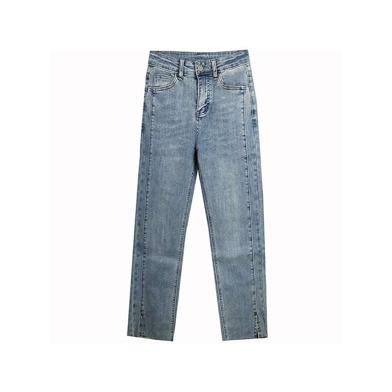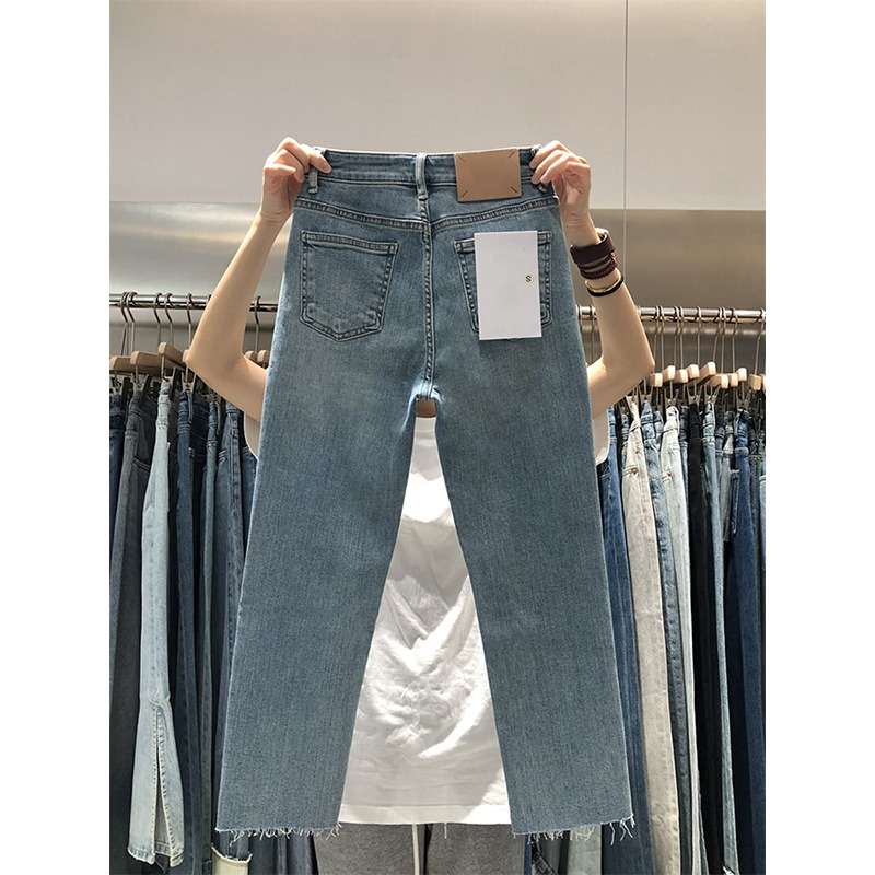 クラシックなミディアムウォッシュの風合いが魅力のストレートジーンズ。裾のカットオフデザインがトレンド感を演出。ハイウエストで脚長効果も期待できる、一本。デイリーユースからカジュアルシーンまで幅広く活躍します。