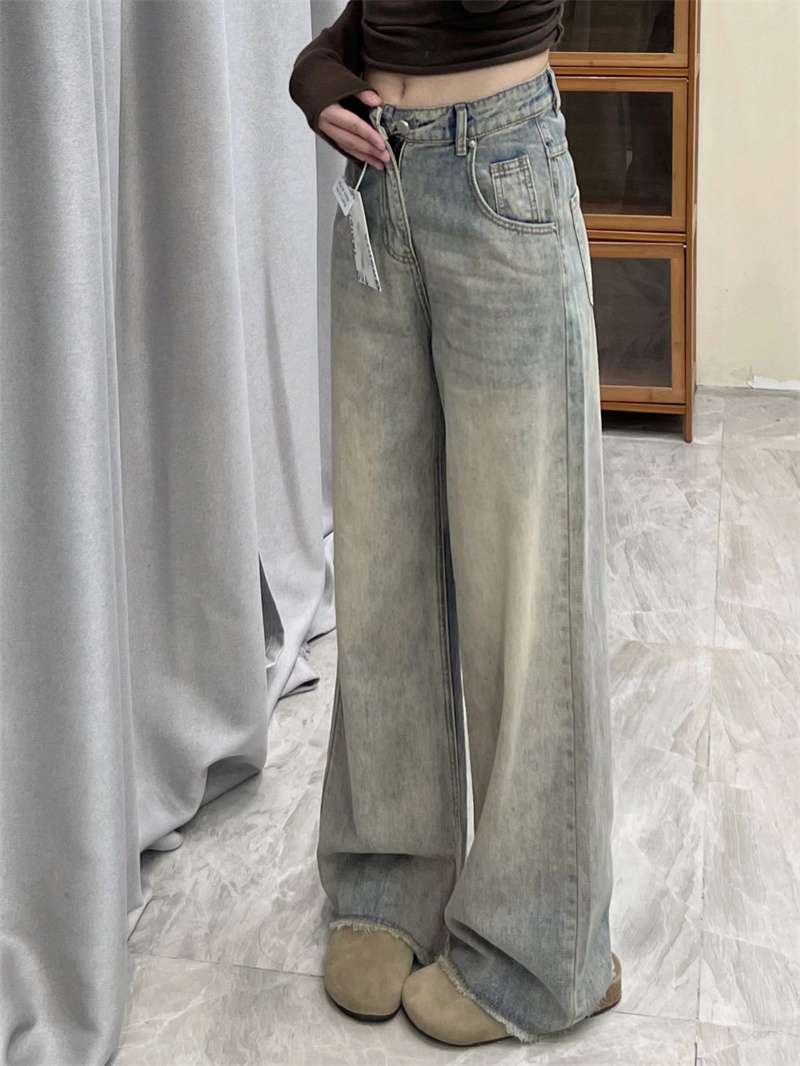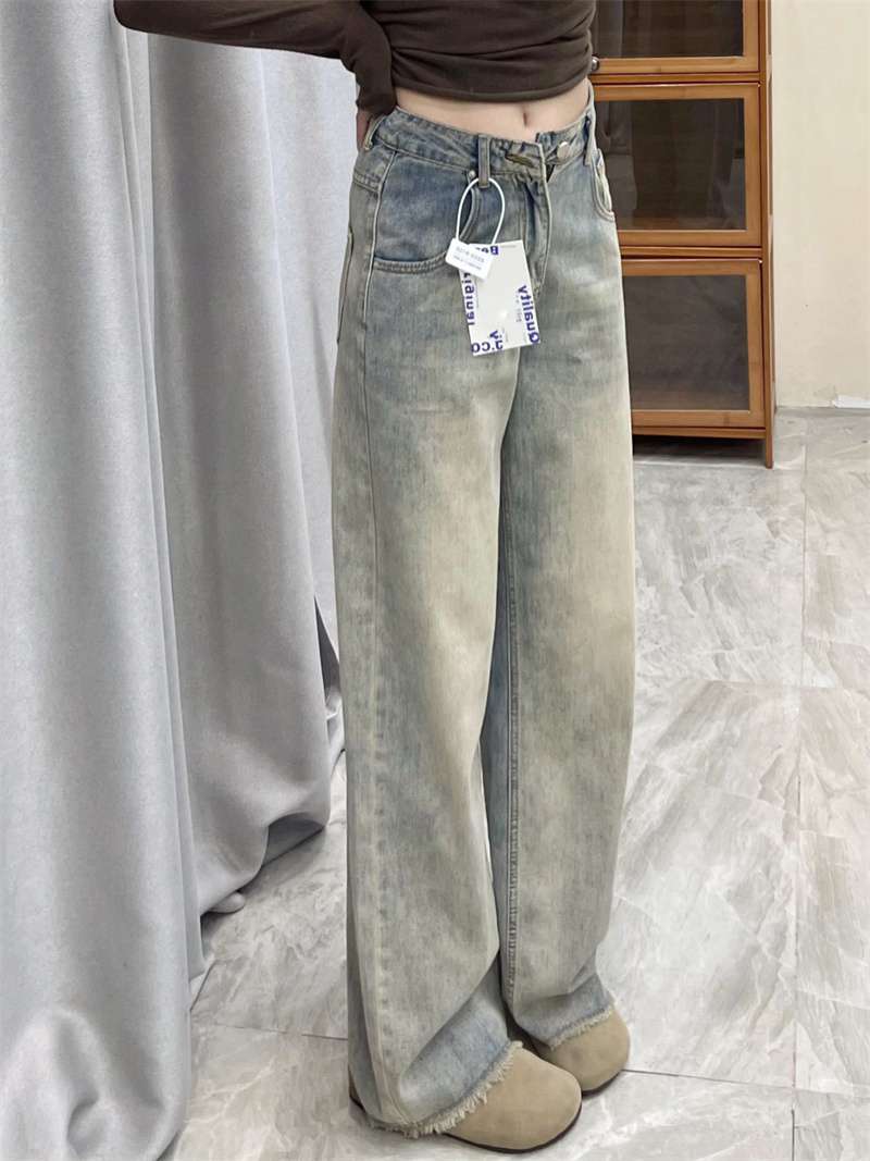 淡いウォッシュ加工が施された90年代風ワイドデニム。ハイウエストデザインで脚長効果抜群。ゆったりとしたシルエットで快適な着心地。タグ付きの新品で、カジュアルからセミフォーマルまで幅広いスタイリングが可能な万能アイテム。