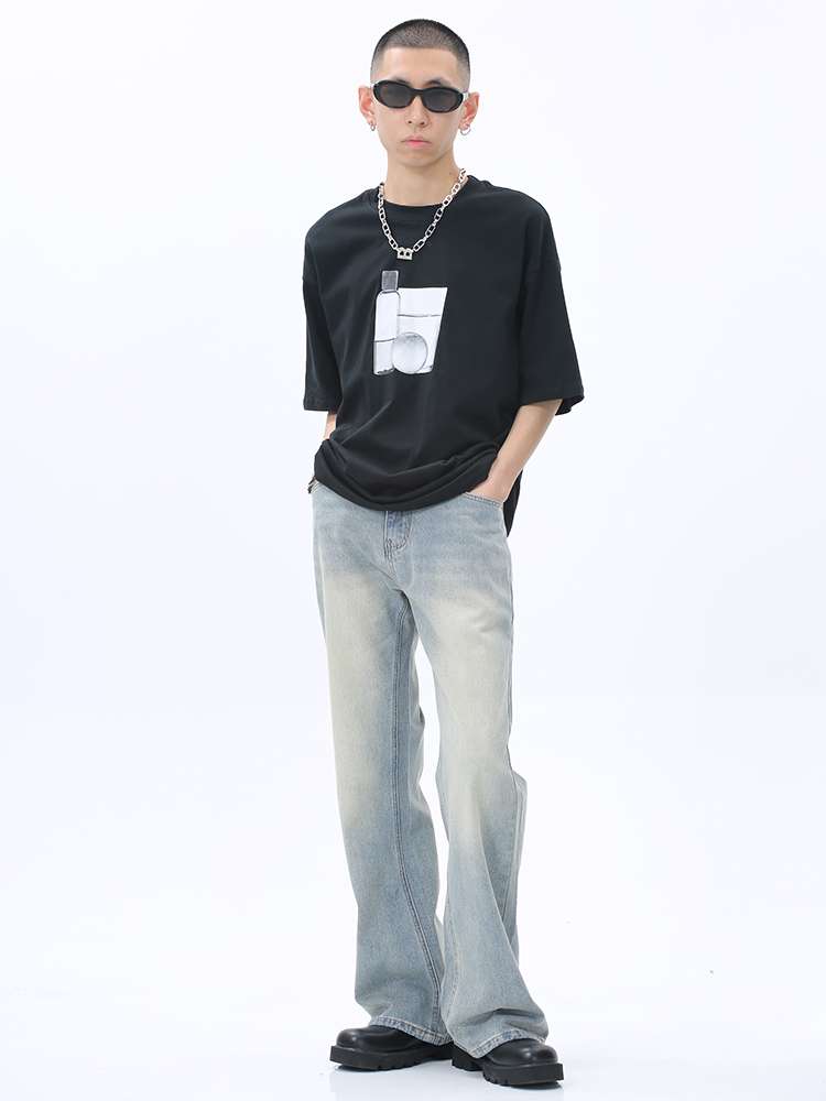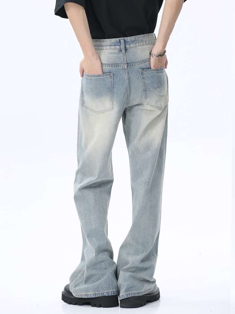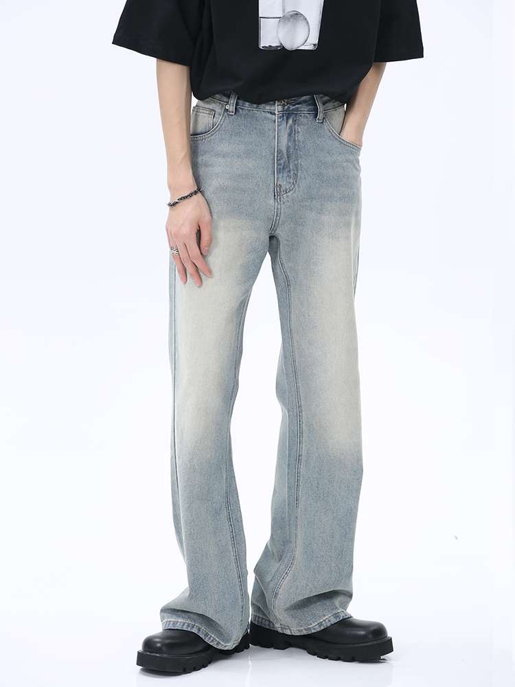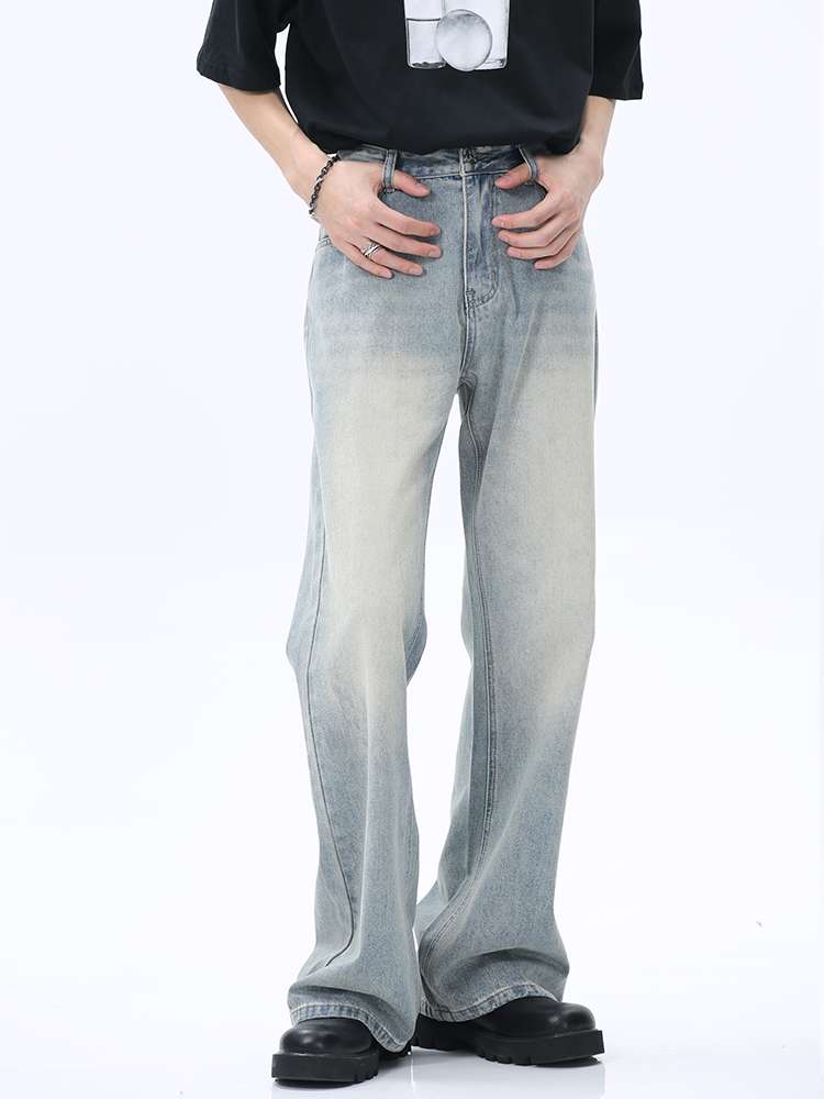 90年代風のルーズフィットが特徴的なワイドデニム。淡いウォッシュ加工と裾広がりのシルエットが、レトロでリラックスした雰囲気を演出。黒のTシャツやチャンキーソールシューズとの相性抜群で、カジュアルからストリートまで幅広いスタイリングに対応。