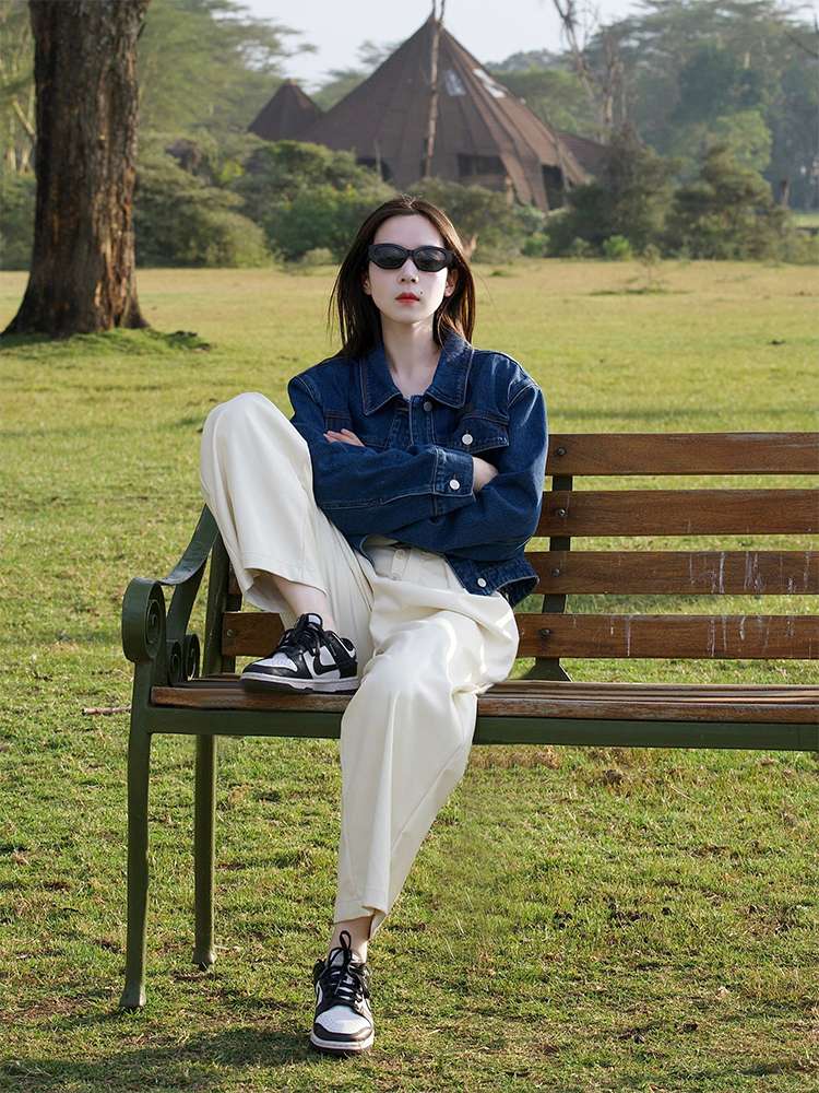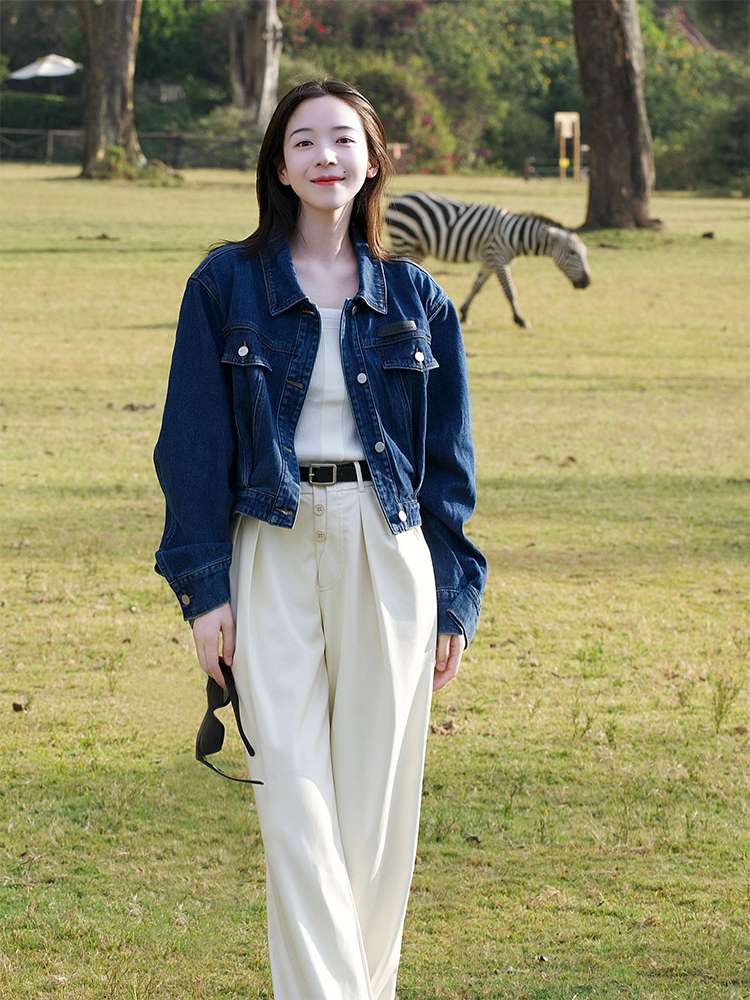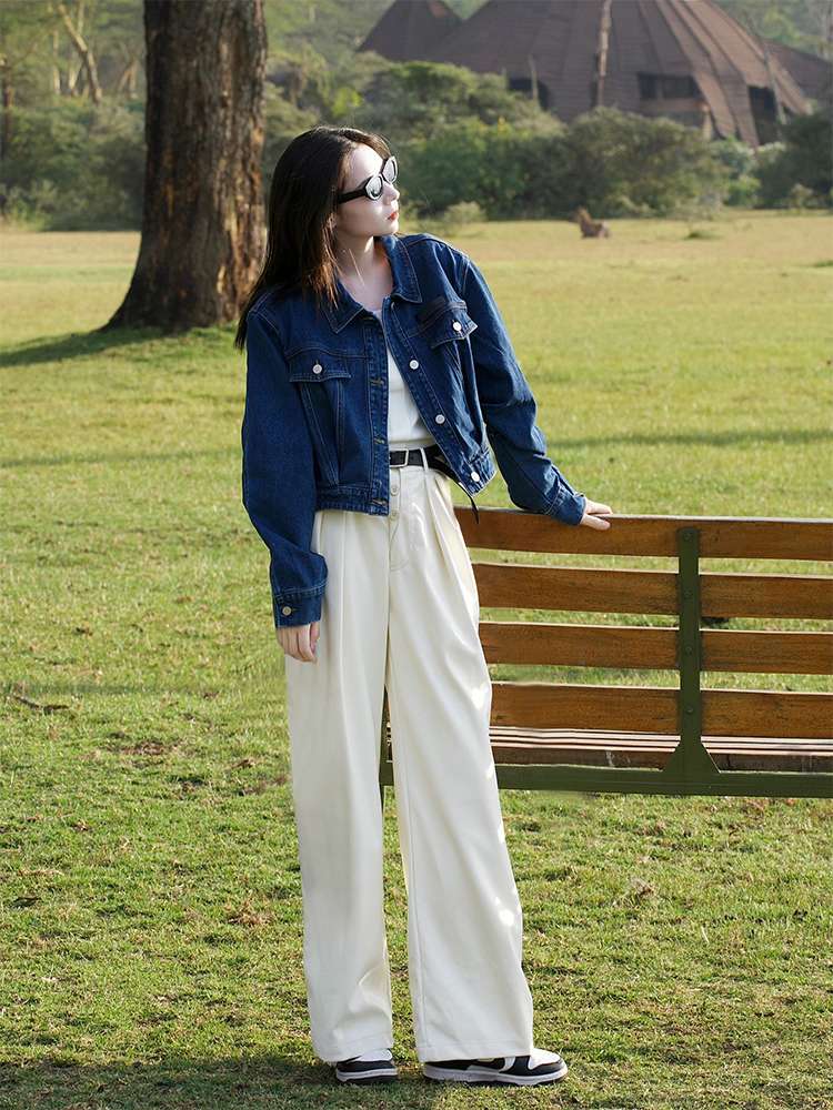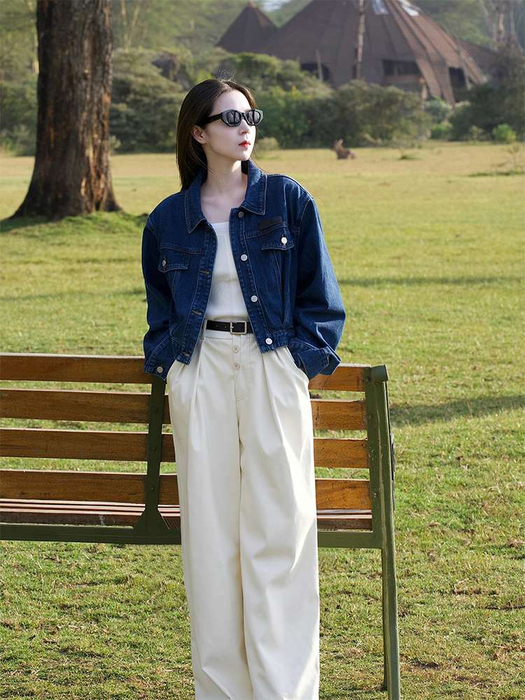 オールシーズン活躍するデニムジャケット。クラシックなデザインで、カジュアルからセミフォーマルまで幅広いコーディネートに対応。白パンツとの相性抜群で、スタイリッシュな印象を演出。丈夫な素材で長く愛用できる一着。