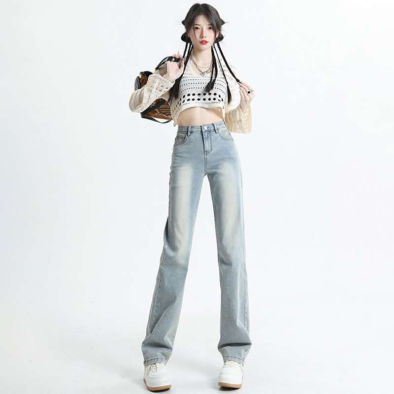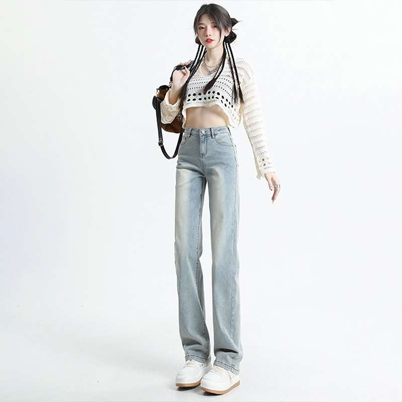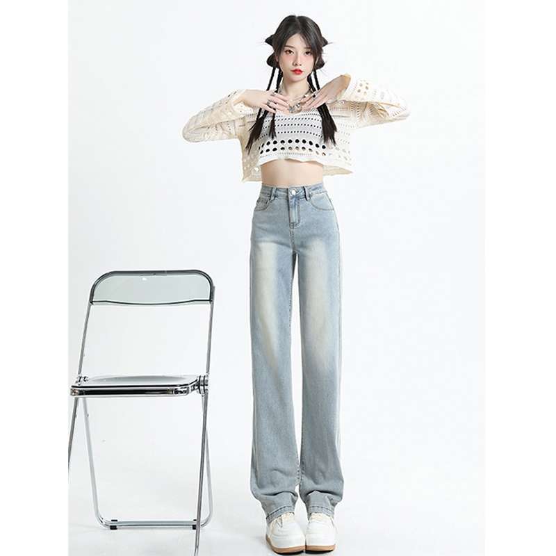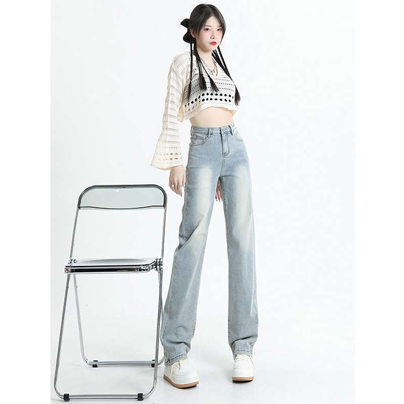 ハイウエストデザインで脚長効果抜群のワイドレッグジーンズ。淡いブルーの風合いが爽やかで、どんなトップスとも相性抜群。ストレッチ素材で快適な着心地を実現。カジュアルからセミフォーマルまで幅広く活躍する一本です。