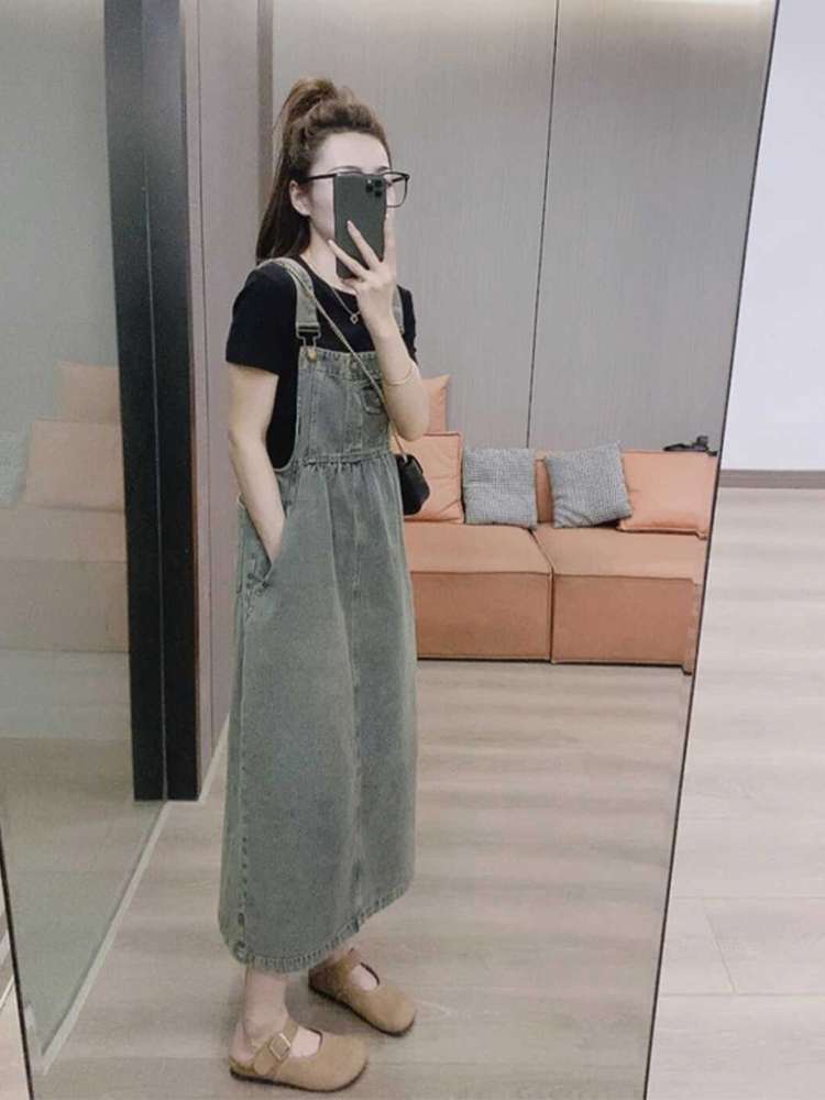 着回し力抜群のデニムオーバーオールワンピース。カジュアルからセミフォーマルまで幅広いシーンで活躍。シンプルなデザインで、Tシャツやブラウスとのレイヤードスタイルも楽しめる。快適な着心地と洗練された雰囲気を両立した一着です。