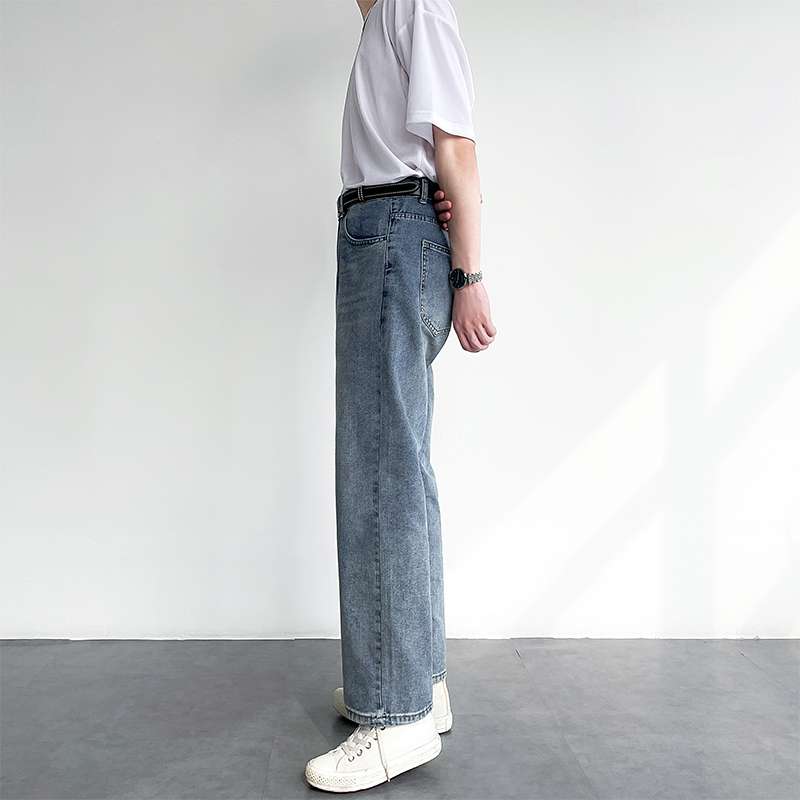 クラシックなストレートシルエットと程良いヴィンテージ加工が特徴のデニムパンツ。ハイウエスト設計で脚長効果あり。白Tシャツとの相性抜群で、カジュアルからセミフォーマルまで幅広く活躍する一本です。