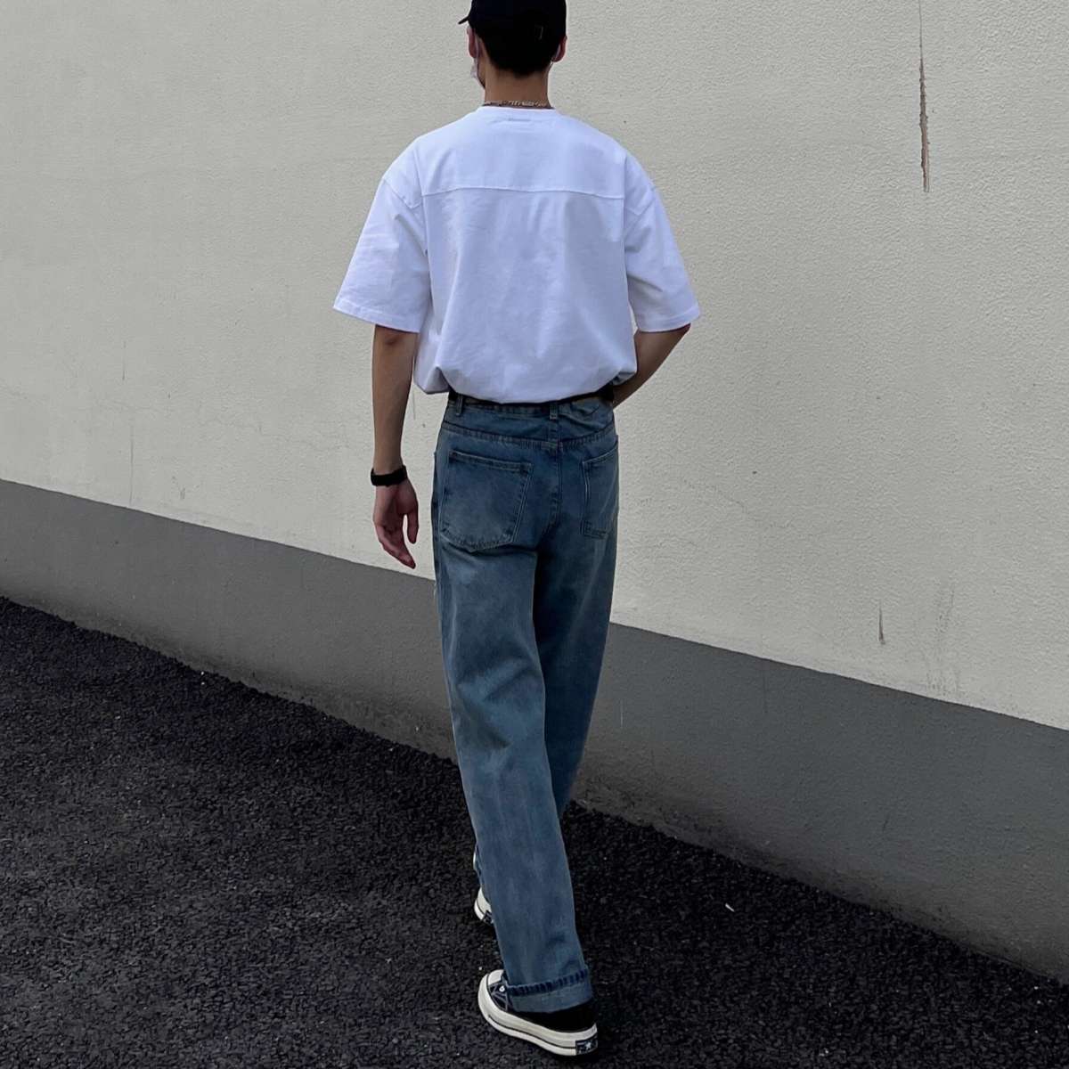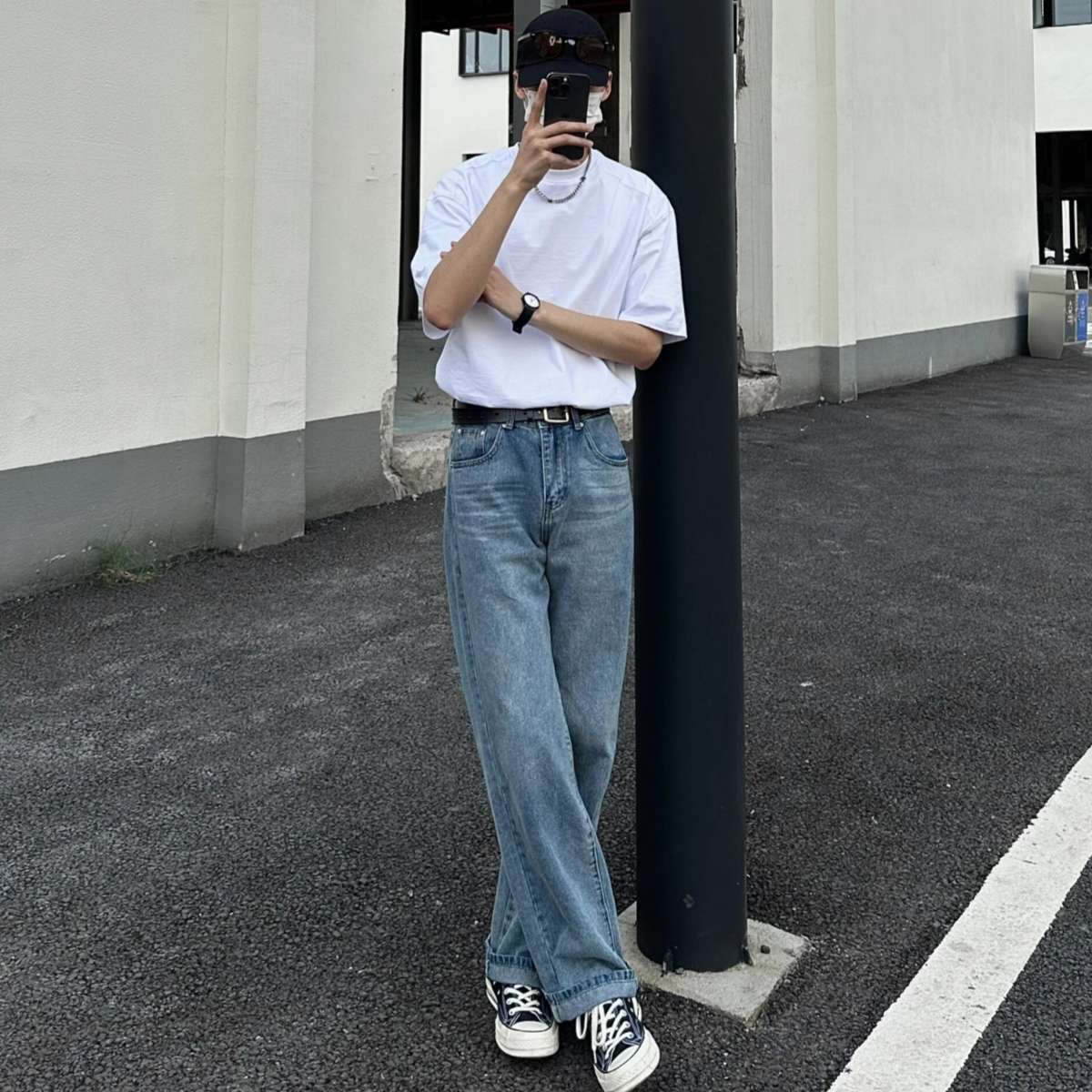 ゆったりとしたシルエットが特徴の現代的なデニムスラックス。ハイウエストデザインで脚長効果があり、カジュアルからセミフォーマルまで幅広く活用できる。白Tシャツやスニーカーと合わせた、トレンドのストリートスタイルにも最適。